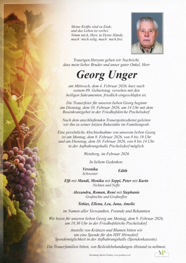 Ruhe in Frieden lieber Georg.Aufrichtige Anteilnahme den Angehörigen. Albert und Gabi Dunkl