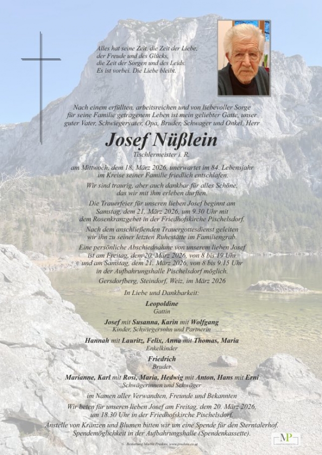 Inniges Beileid der Trauerfamilie. Mögen Engel dich auf deiner letzten Reise geleiten,lieber Sepp.. Ingeborg Stibor