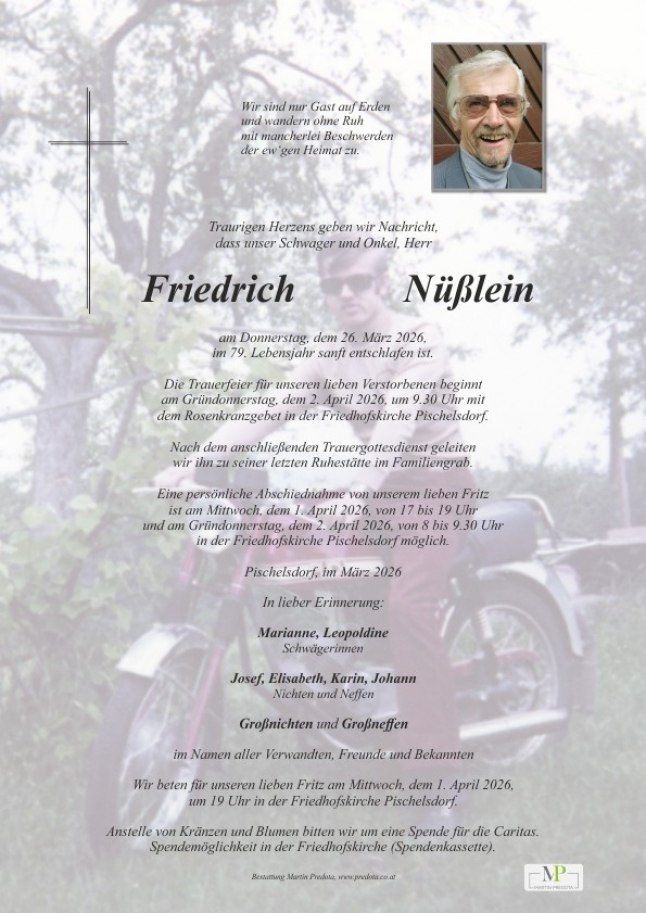 Lieber Fritz, Ruhe in Frieden Familie Rosi und Rudi Klinger